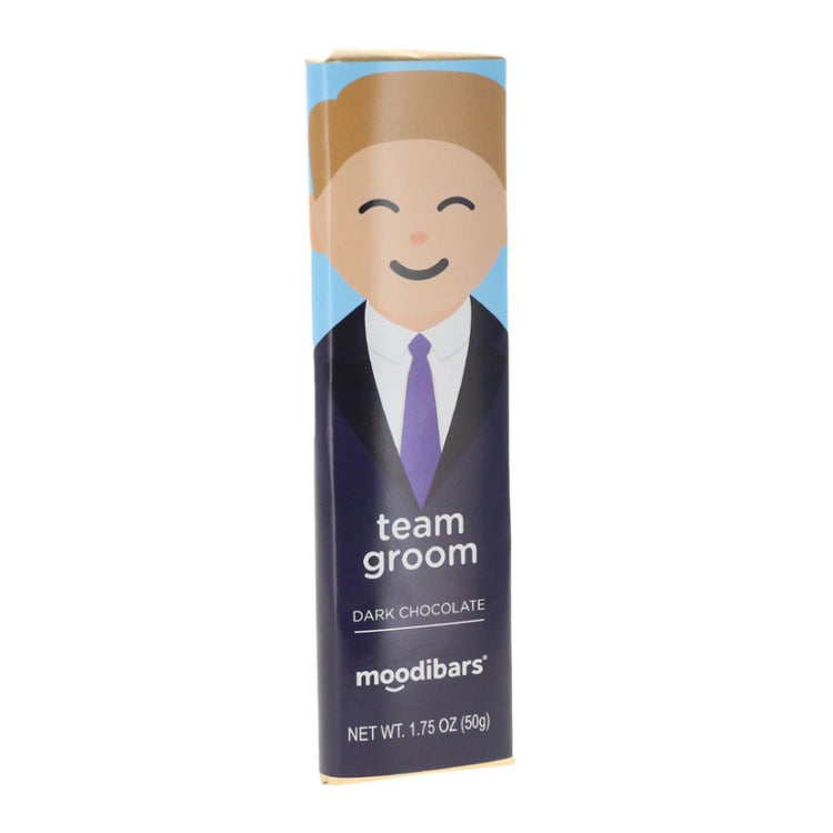 Which team are you on? Team Groom! Our Moodibar Matrimony Team Groom Dark Chocolate 1.5oz bar is the perfect gift or party favor for those that are "Team Groom". Perfect for wedding favors, bachelor parties, or bachelor party invite gift boxes.