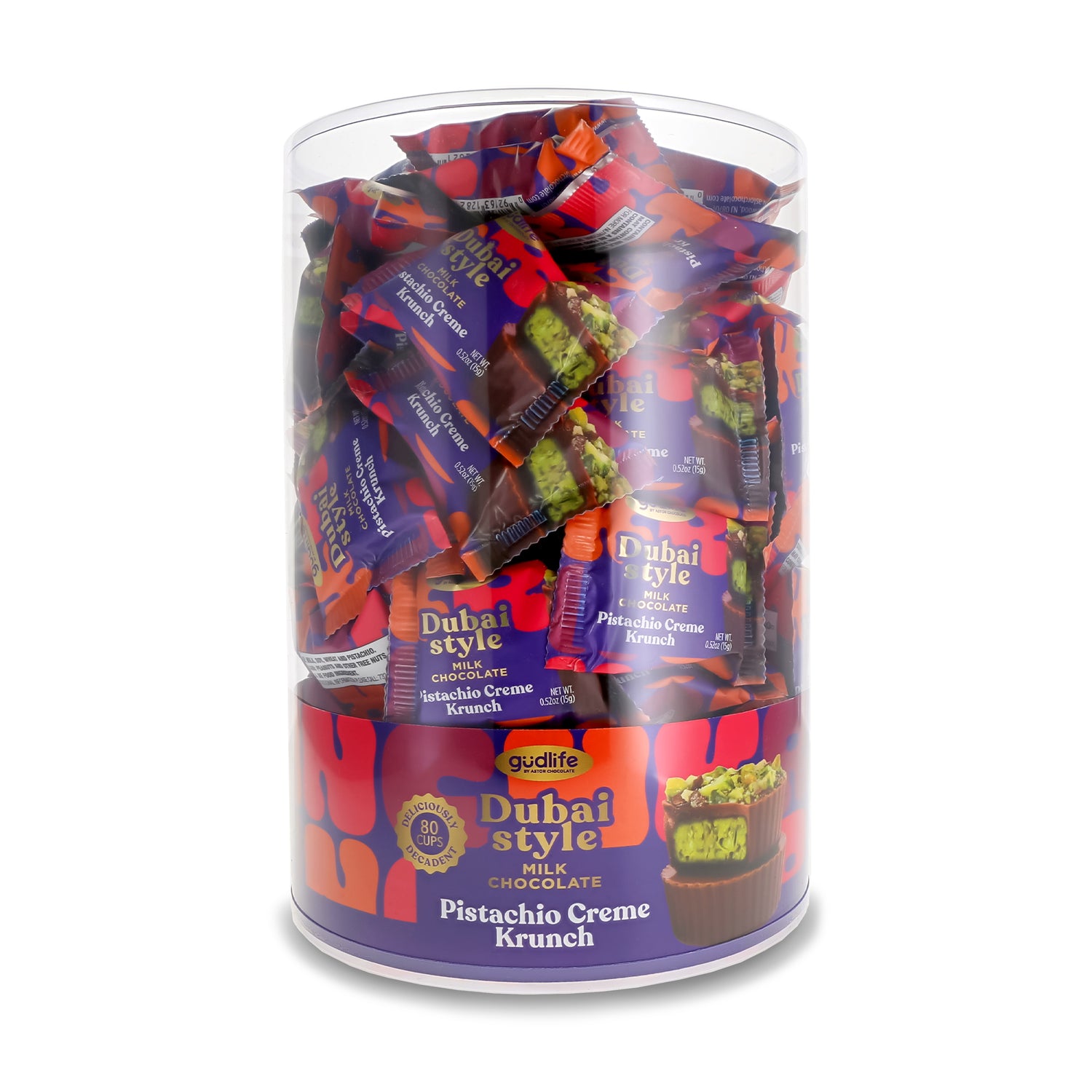 Gudlife Dubai Style Milk Chocolate Pistachio Creme Cups in Tub 80pcs