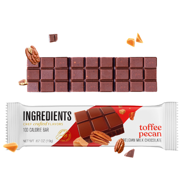 Ingredients Toffee Pecan Belgian Milk Chocolate 100 Calorie Bar - 24 Case Pack