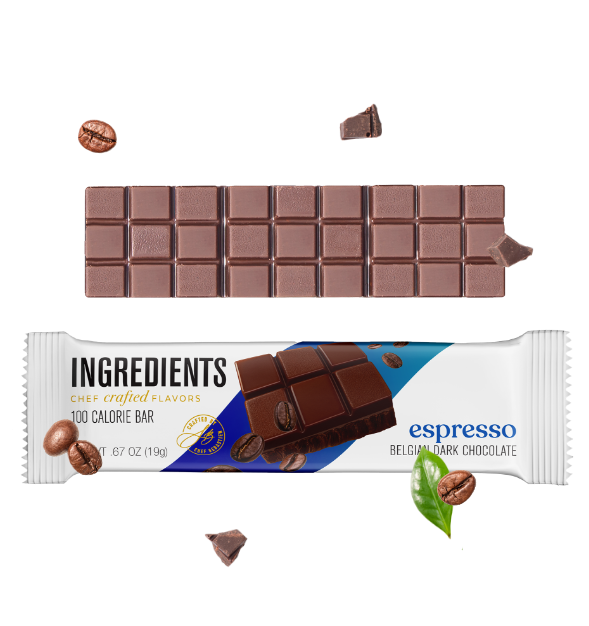 Ingredients Espresso 54% Belgian Dark Chocolate 100 Calorie Bar - 24 Case Pack