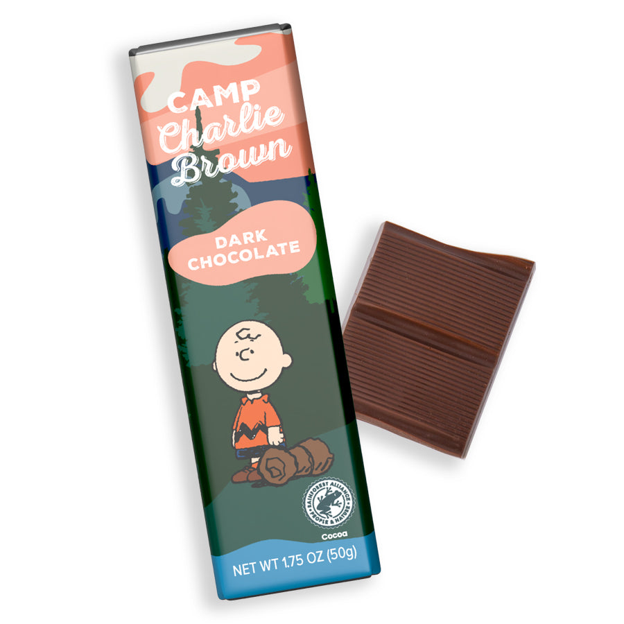 Our Peanuts® Camp Charlie Brown Dark Chocolate 1.5oz Bar brings so much adventure into one treat!