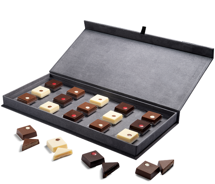 Enjoy 15 pieces of decadent truffles with a unique microdot design presented in a luxurious red suede box, perfect for a special occasion. These truffles offer a rich, and creamy flavor that will tantalize and delight your taste buds and offer you an unforgettable experience!