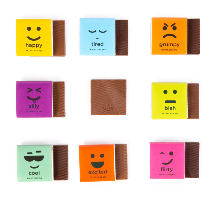 Treat your taste buds with the Moodibars Squares Gift Set. This 18 piece chocolate square gift set offers an exquisite selection of Moodibars mini bars that are sure to tantalize your palate. Each pack contains a variety of flavors each to a different mood, providing a delightful and shareable indulgence. What is your Moodi?