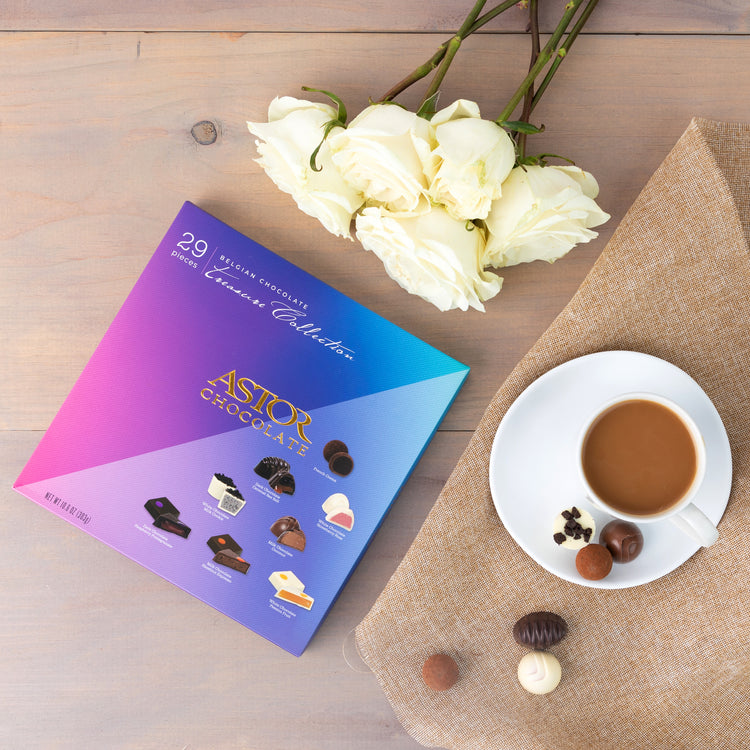 Indulge in decadent pleasure with this selection of gourmet truffles. Our assorted truffle gift box features seven flavors of delicious truffles and makes the perfect gift or treat. Assorted truffle flavors include: Dark Chocolate Caramel Sea Salt, French Cremé, White Chocolate Milk Cookie, Milk Chocolate Coconut, Dark Chocolate Raspberry Pomegranate, Milk Chocolate Hazelnut Espresso, and White Chocolate Passionfruit.