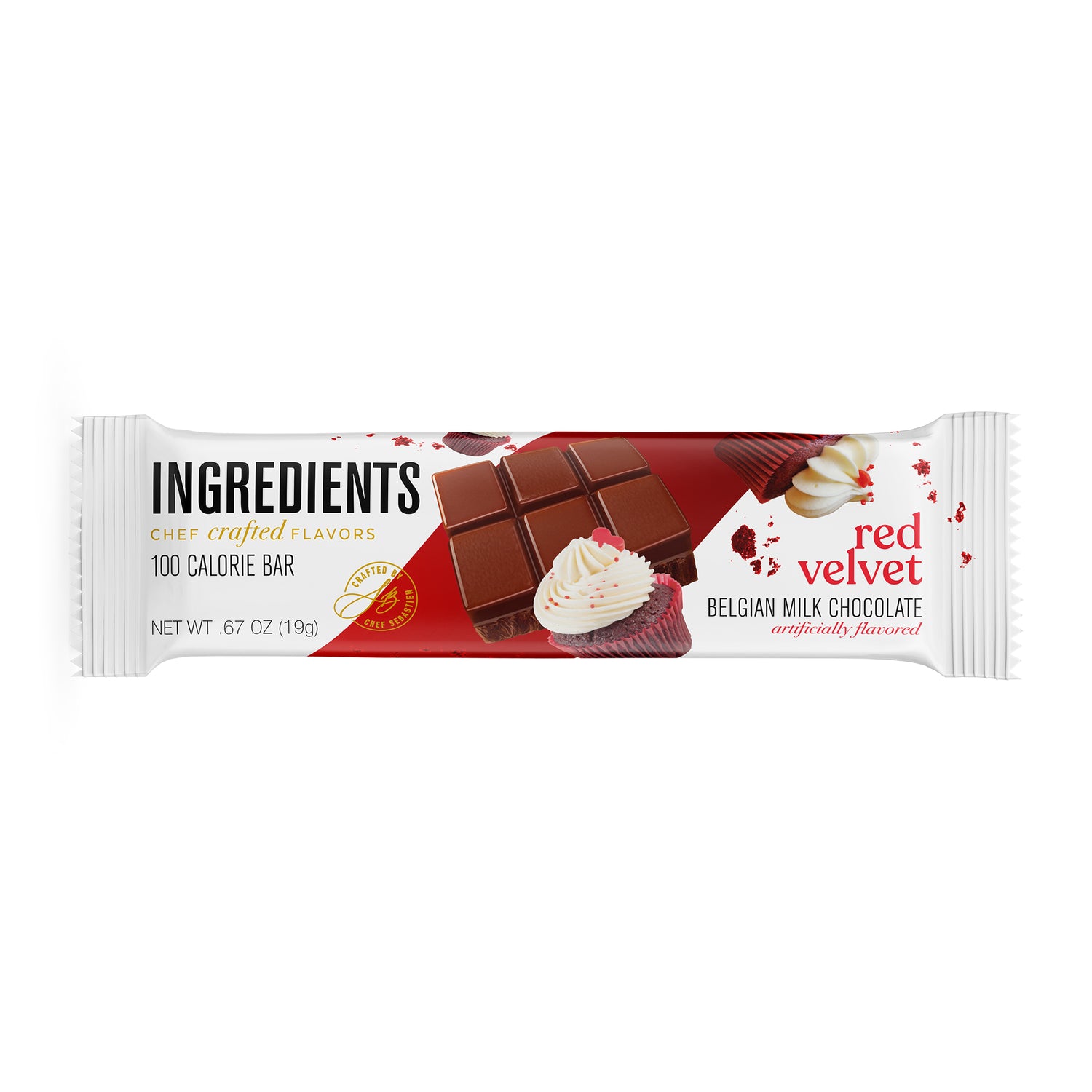 Ingredients Red Velvet Belgian Milk Chocolate 100 Calorie Bar - 24 Case Pack