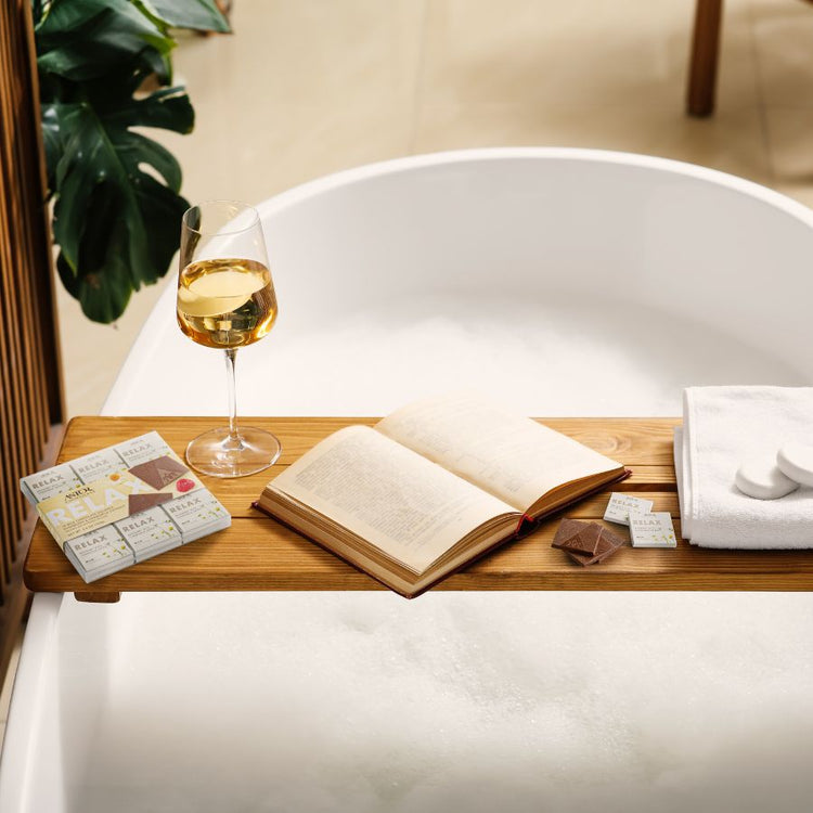 Relax with Raspberry Chamomile Creamy Milk Chocolate. Enjoy these 18 bite-sized squares, each infused with relaxing properties for a unique sweet treat. Delicious milk chocolate with hints of raspberry and chamomile create a decadent experience. Recharge and rejuvenate with Relax!