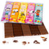 Sample the sweetness of Snoopy's milk and dark chocolates, Charlie Brown's delectable caramel, Franklin's delicious toffee pretzel milk chocolate, and Lucy's scrumptious dark chocolate almond bars.